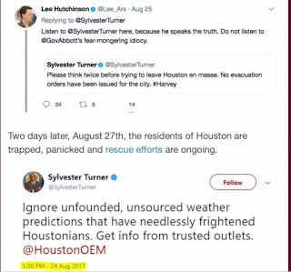 On August 25th it was announced that Southeast Texas had a wall of water coming straight at the Houston gulf coast, at that time President Trump immediately told his administration to prepare emergency procedures. Trump and GOP Governor of Texas, Greg Abbott immediately urged citizens to prepare, and Abbott even asked everyone to evacuate as soon as possible. However, Mayor Turner decided that he would be stubborn and not listen to any Republicans on this matter writing “Ignore unfounded, unsourced weather predictions that are frightening Houstonians, get info from trusted outlets.”